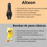 “Alteon™ utiliza terapia avanzada para mejorar la circulación y potenciar el rendimiento masculino. Combina estimulación del glande, vibrador con lengua y masturbador en un solo dispositivo. Es seguro, no invasivo y práctico para usar en casa, ayudando a recuperar la confianza y mejorar la salud íntima.”