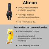 “Alteon™ utiliza terapia avanzada para mejorar la circulación y potenciar el rendimiento masculino. Combina estimulación del glande, vibrador con lengua y masturbador en un solo dispositivo. Es seguro, no invasivo y práctico para usar en casa, ayudando a recuperar la confianza y mejorar la salud íntima.”